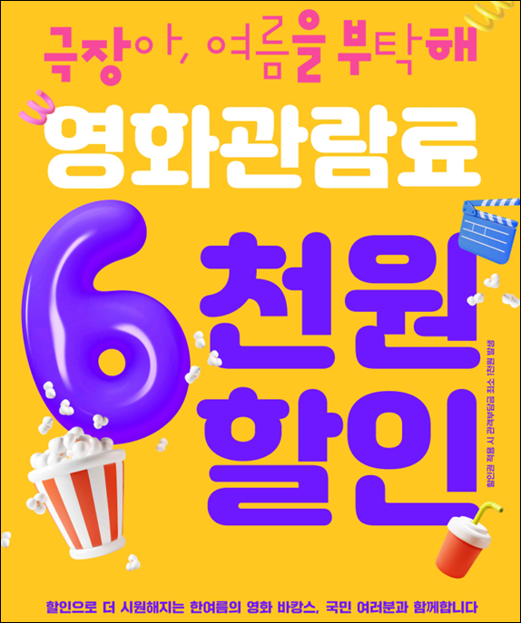문화체육관광부(장관 유인촌, 이하 문체부)는 영화진흥위원회(위원장 한상준, 이하 영진위)와 함께 올여름을 맞아 전국 영화관 입장권 6천 원 할인권 총 450만 장을 배포한다고 밝혔습니다.