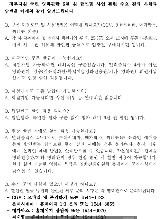 - 참여 극장: CGV, 롯데시네마, 메가박스, 씨네큐 및 기타 소규모 영화관